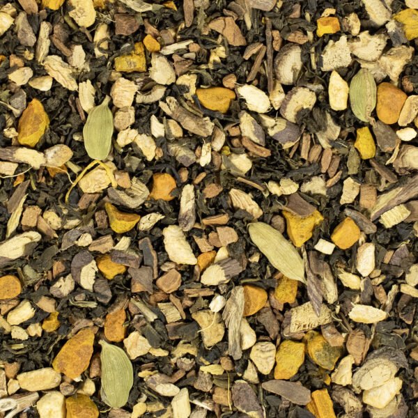 Zutaten: Grüner Tee, Ingwer, Zimt, Süßholz, Kurkuma, Kardamom – natürlich, ohne Zusatzstoffe.