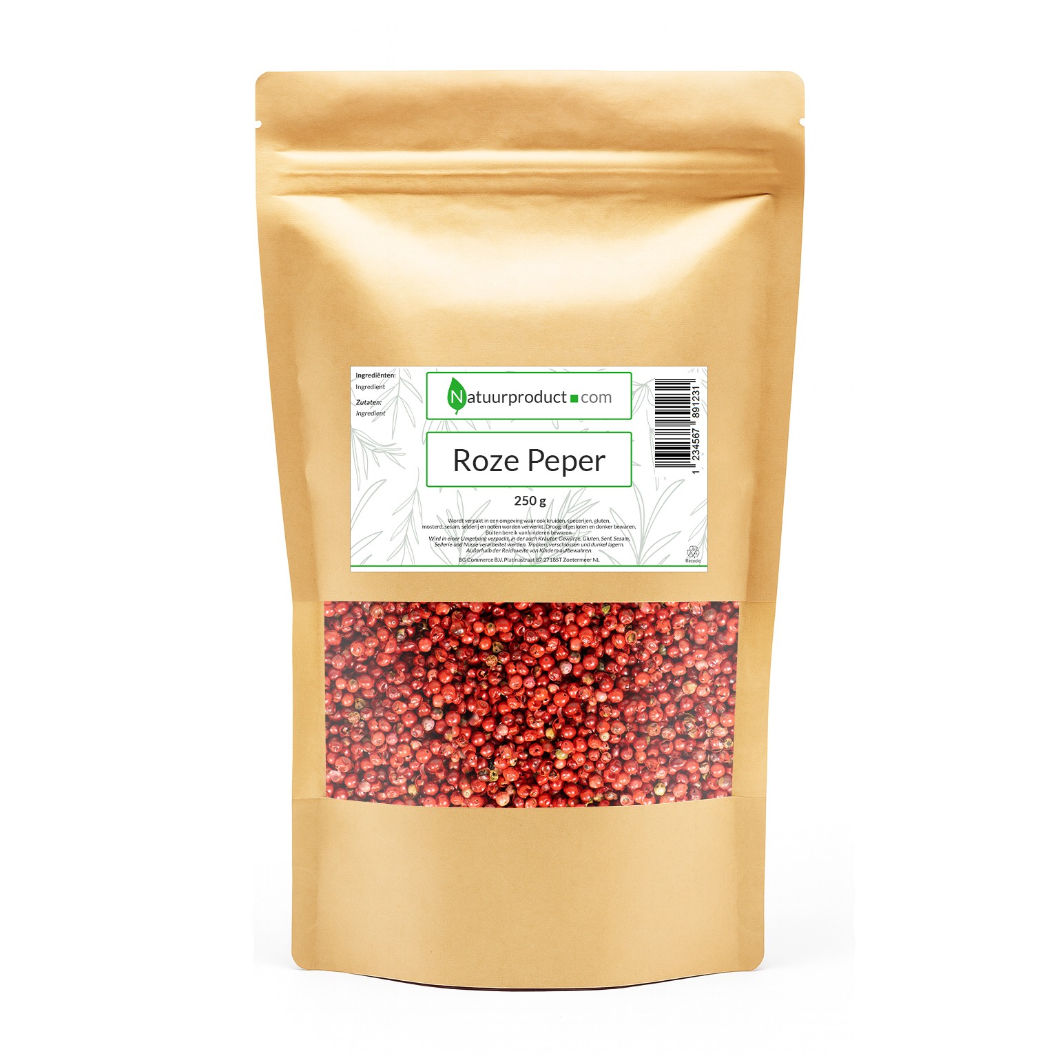 Zutaten: Ganze rosa Pfefferbeeren (Schinus terebinthifolia). 100% natürlich, ohne Zusatzstoffe.