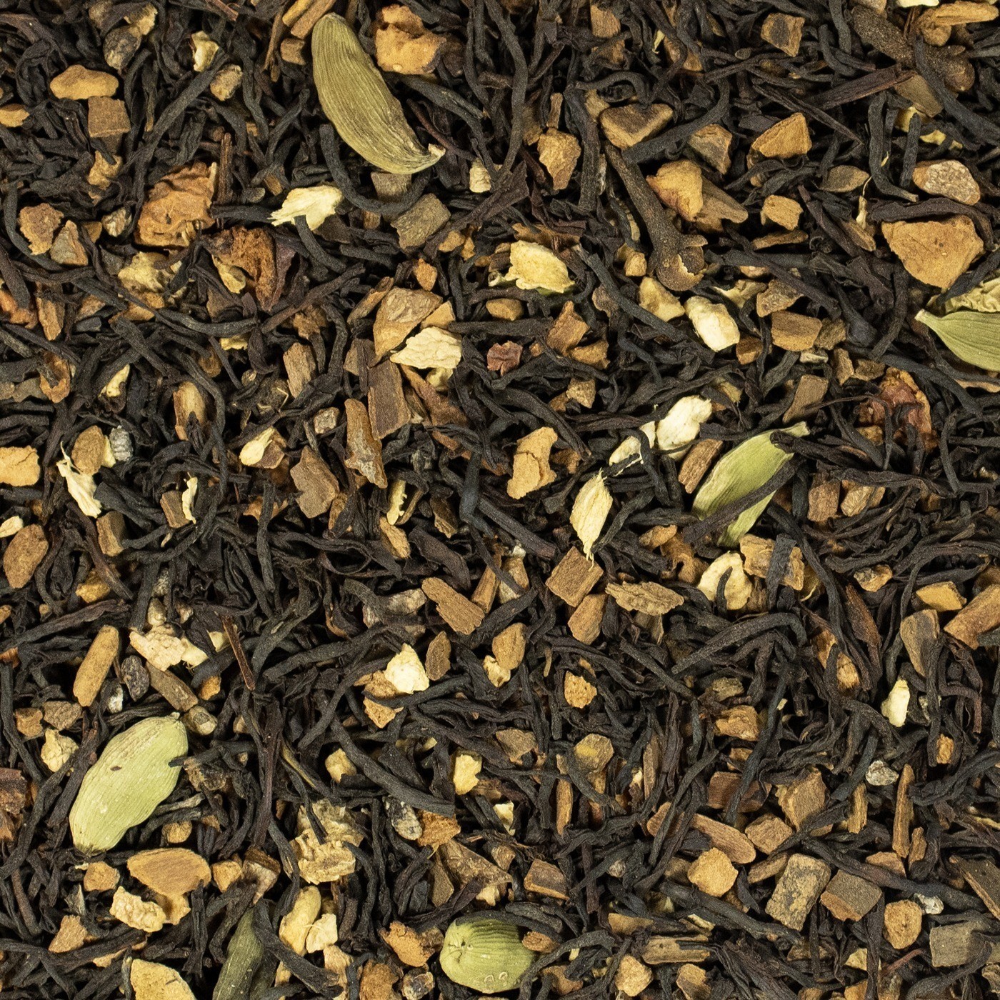Zutaten: Schwarzer Tee, Zimt (Cassia), Ingwerstücke, Apfelstücke, Kardamom, Nelken.
